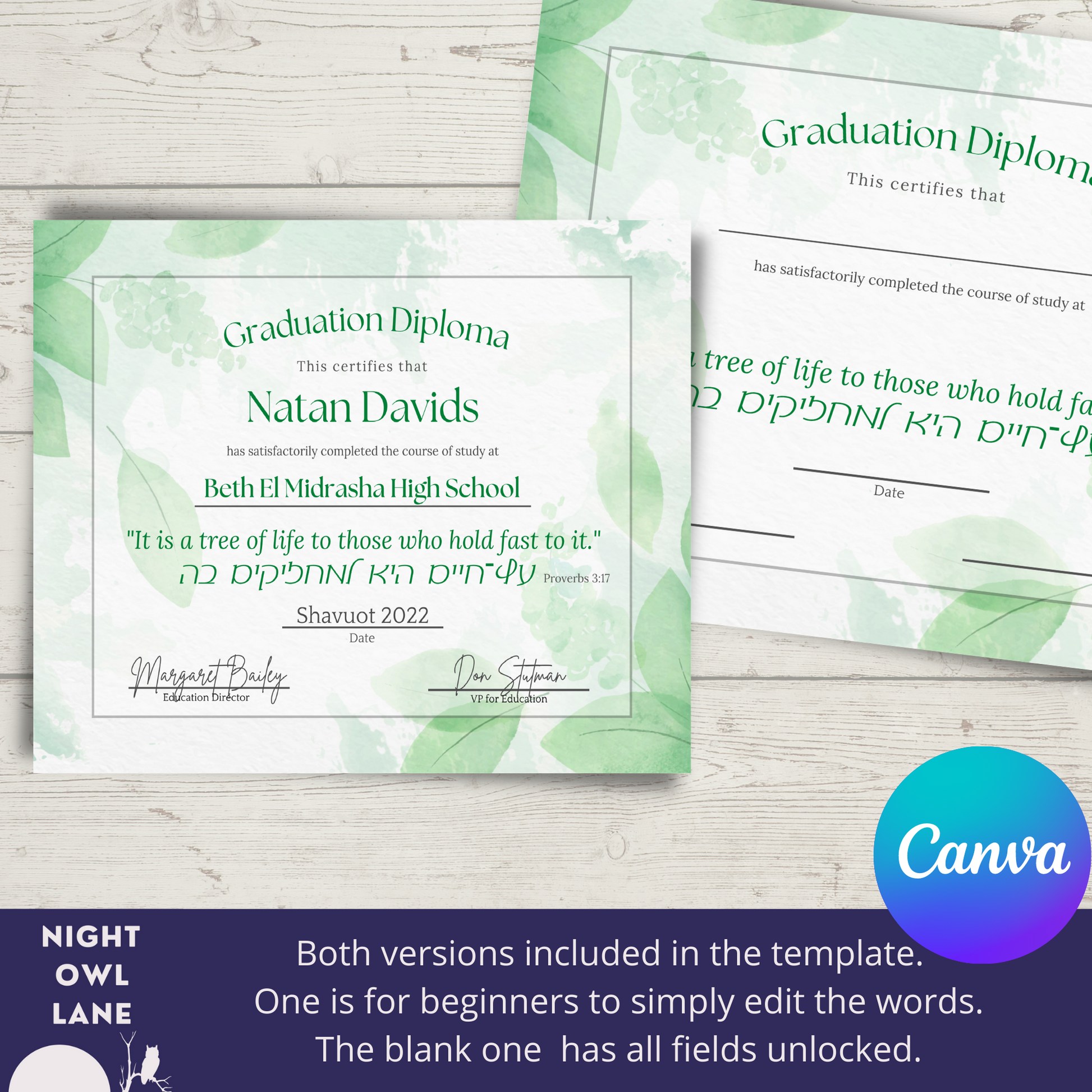 *Celebrate Jewish School Graduation with a Beautiful, Personalized Diploma! ✡️