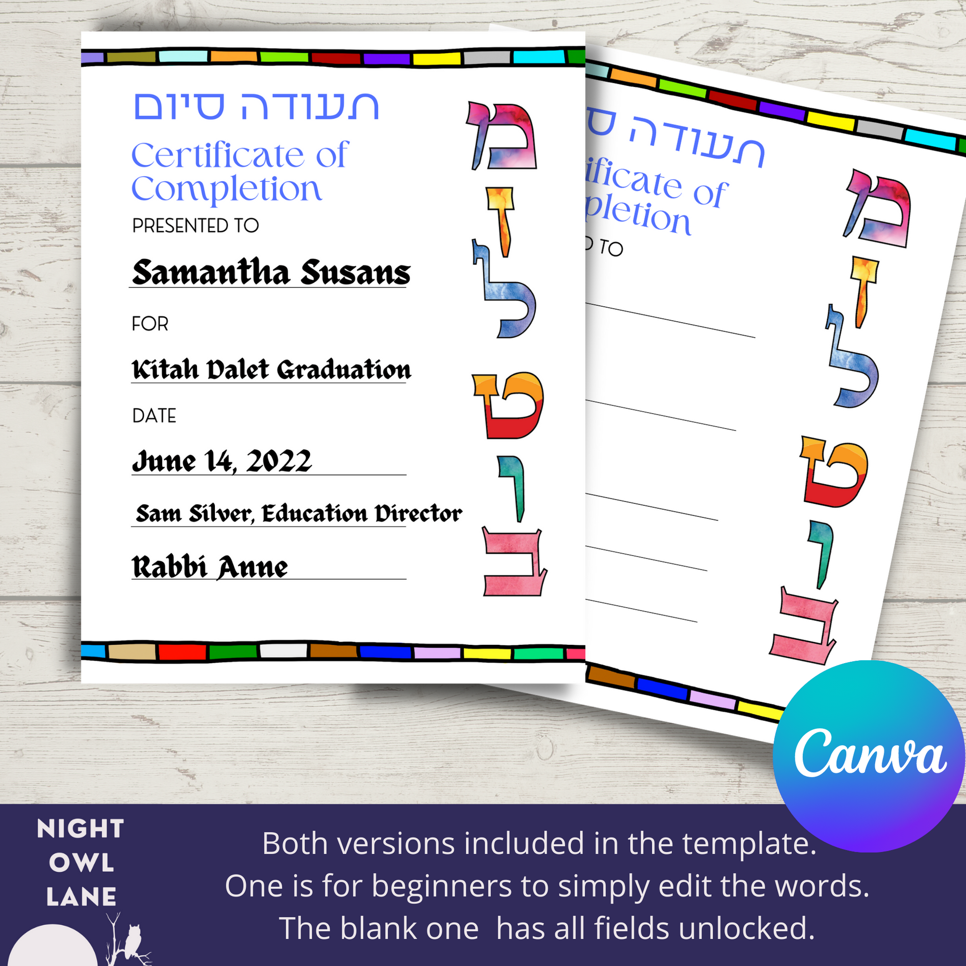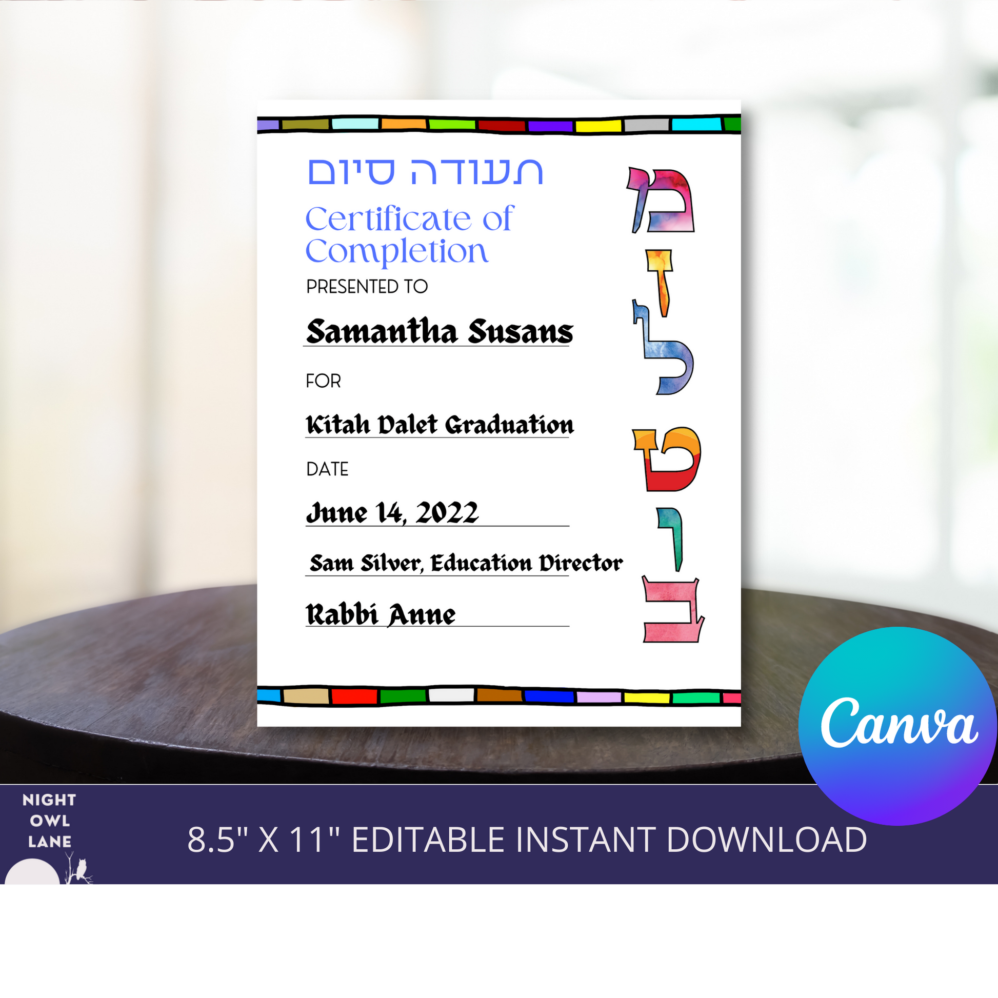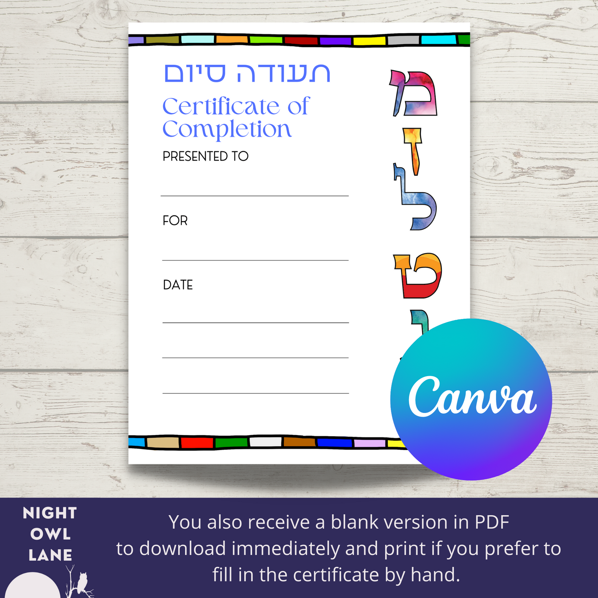 *Celebrate Jewish Milestones with a Beautiful, Personalized Certificate of Completion! ✡️
