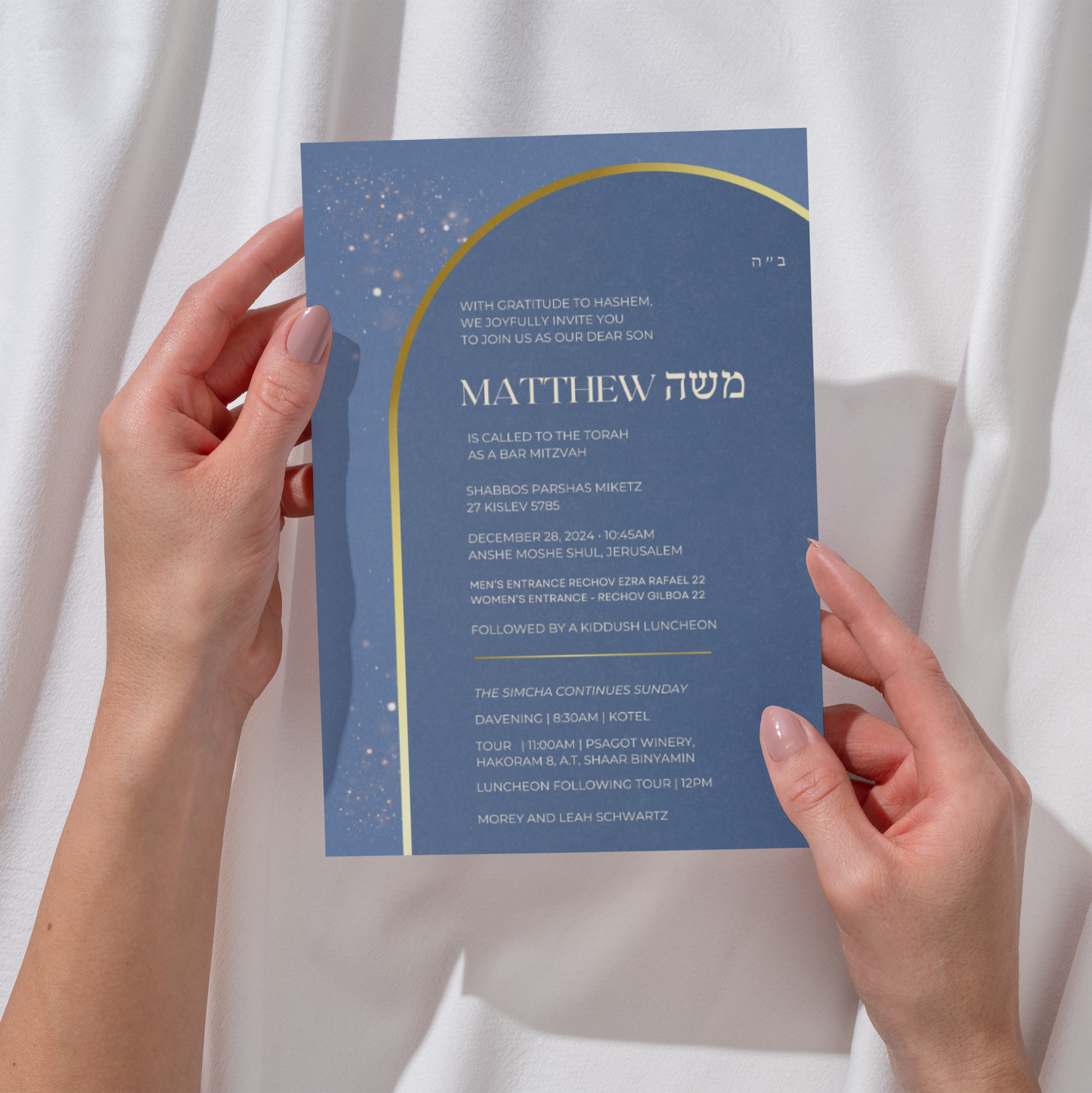 Because both pieces are digital, you’ll receive high-resolution files that you can provide to your printer or share instantly online. This bundle ensures your celebration looks polished and cohesive from the very first impression—perfect for setting the tone for a truly memorable simcha.