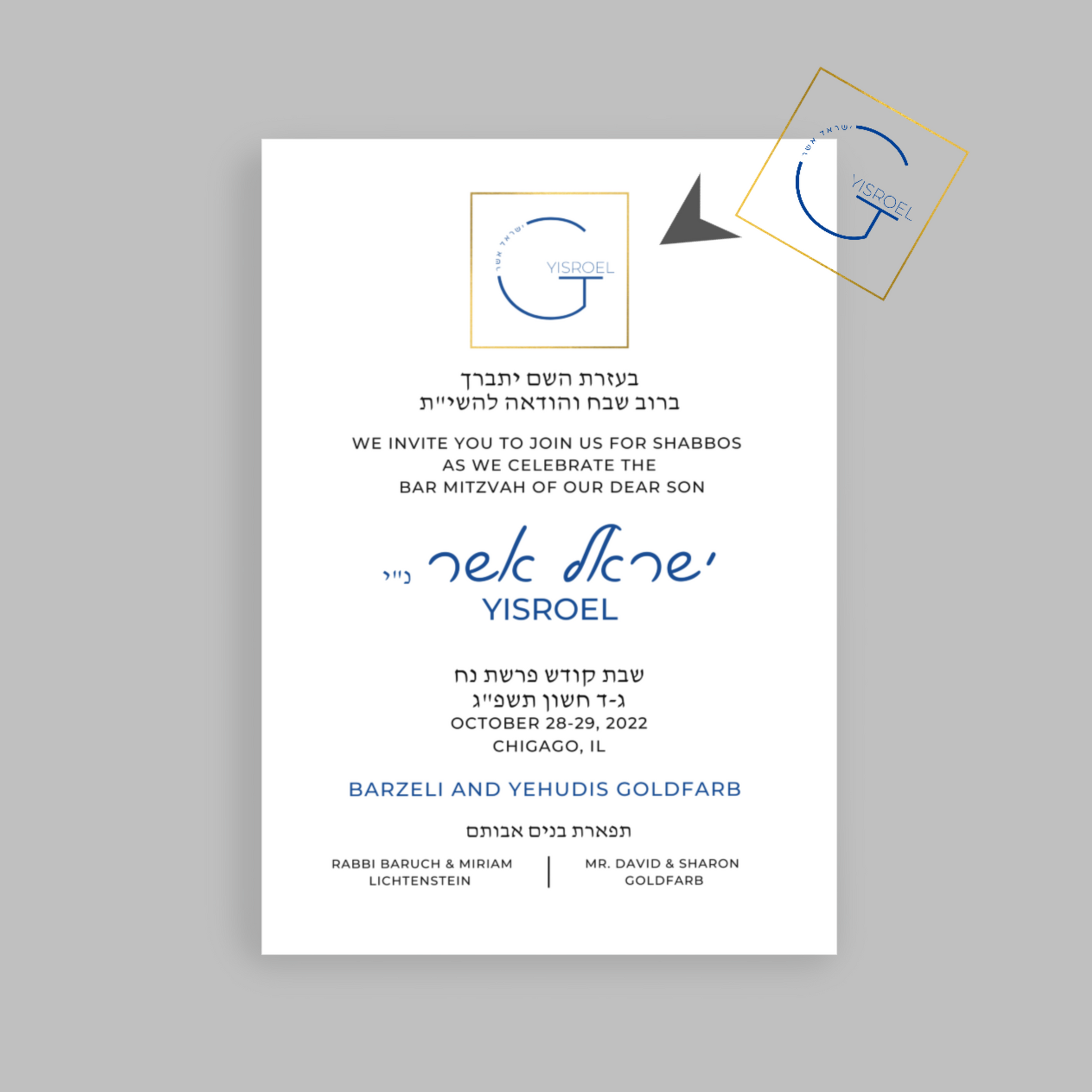 Celebrate this milestone in style with a coordinated design set that includes both a personalized Bar/Bat Mitzvah monogram and a matching Hebrew/English invitation. Your monogram will be created just for you, reflecting your event’s theme, colors, and personality, while your invitation design will elegantly present all the details in a professional, print-ready format.
