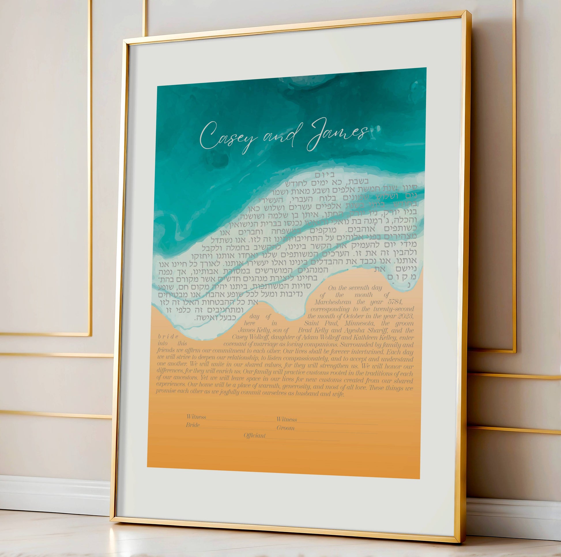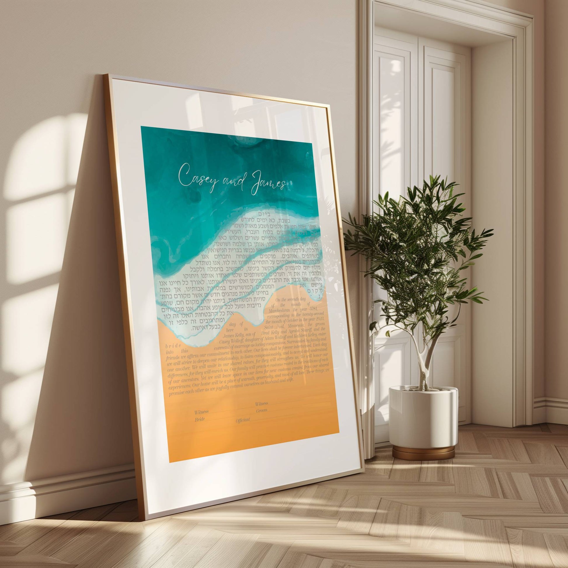 Celebrate your love with this stunning Beach Art Ketubah Print, a beautiful fusion of tradition and modern artistry