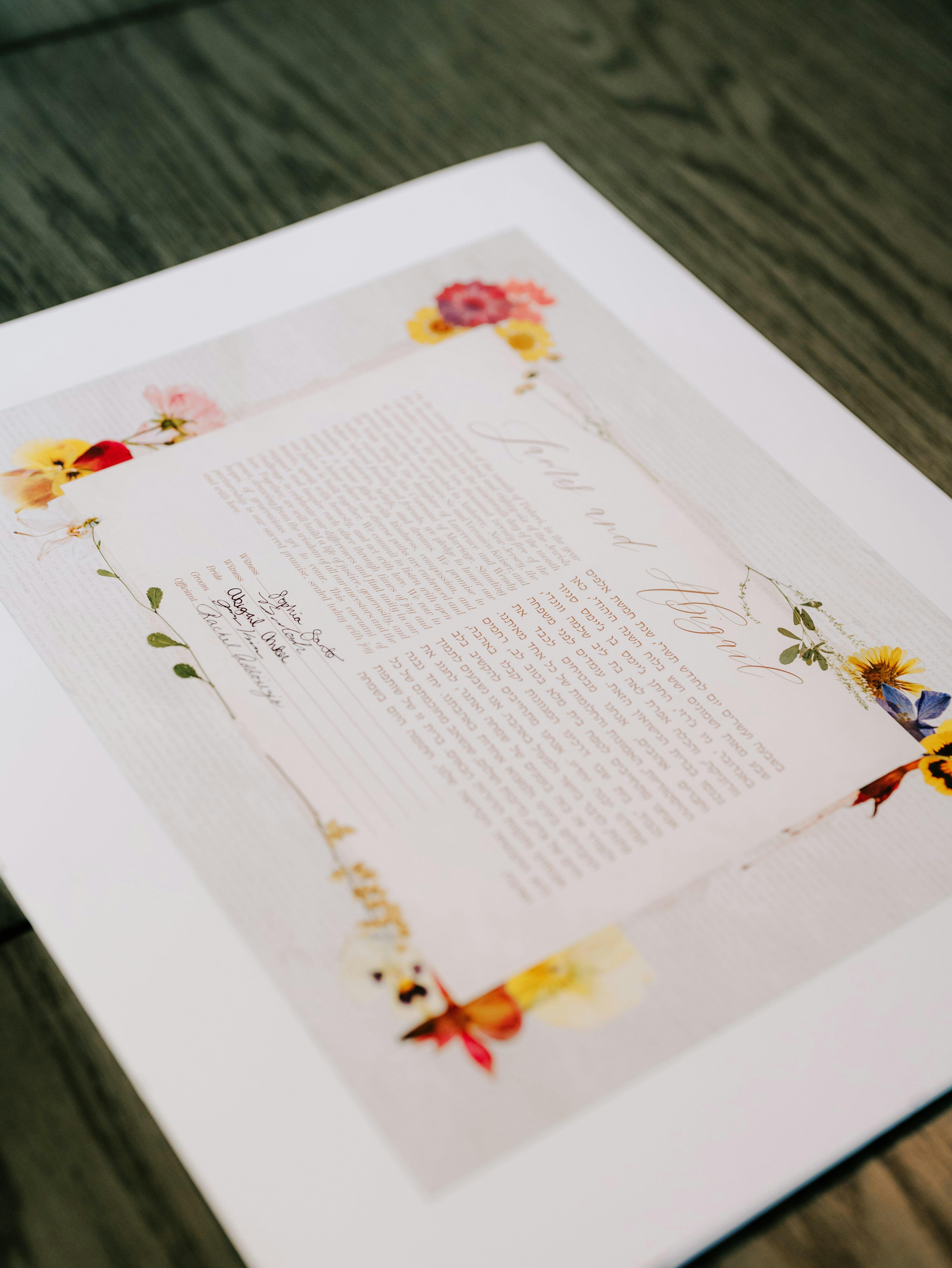 For the non-binary text I am able to adjust the Humanistic text because Hebrew is a gendered language and that particular text is written in the plural which is considered to include both masculine and feminine in Hebrew. The only change would be in the Hebrew where the Hebrew names typically include "son of" or "daughter of." In this case I would work with the couple to find a solution that best works for your scenario, for example using the plural, or leaving the parents names off the ketubah.