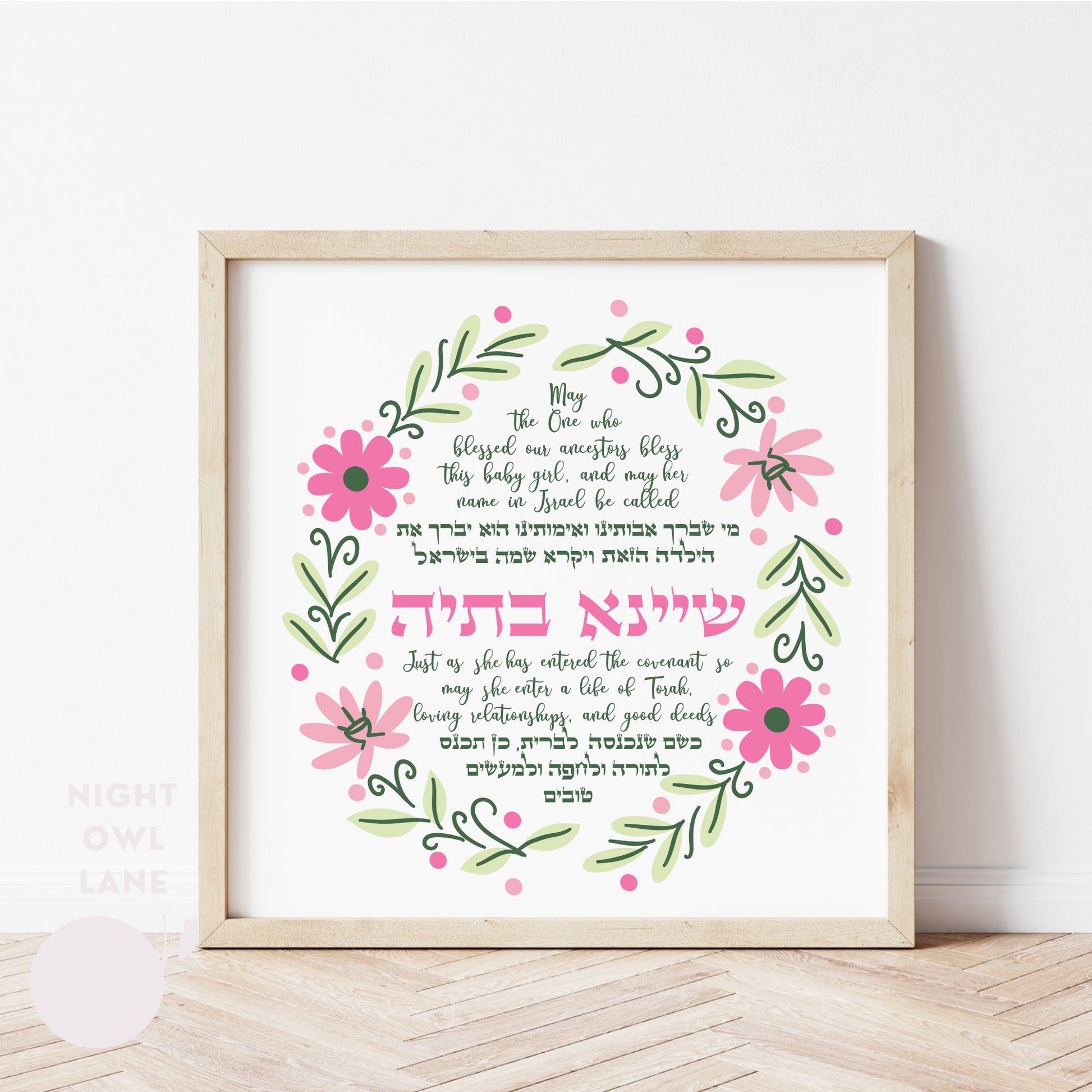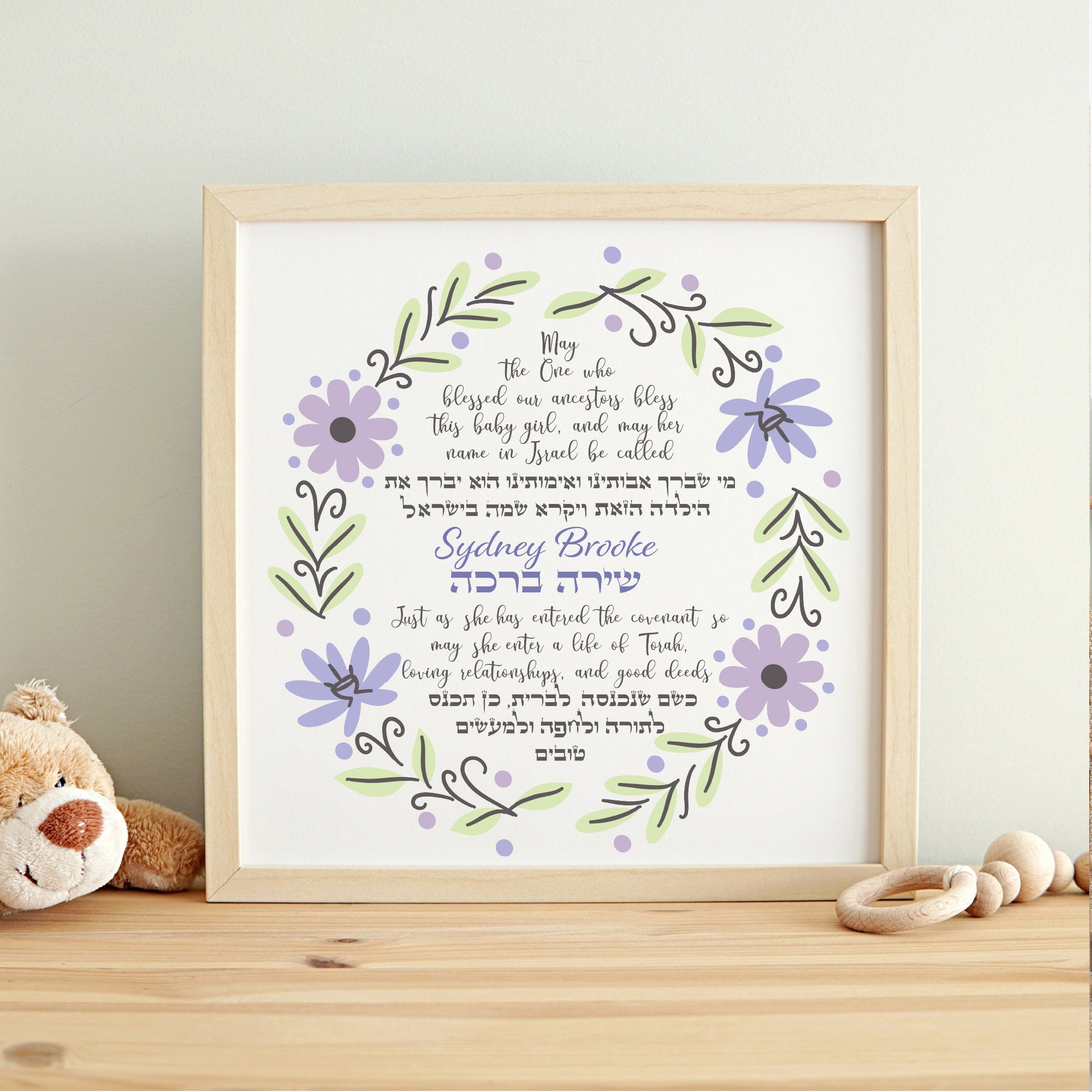 This unique and heartfelt artwork is a meaningful way to honor a baby girl’s entry into the Jewish community and create a lasting memory of this special milestone.