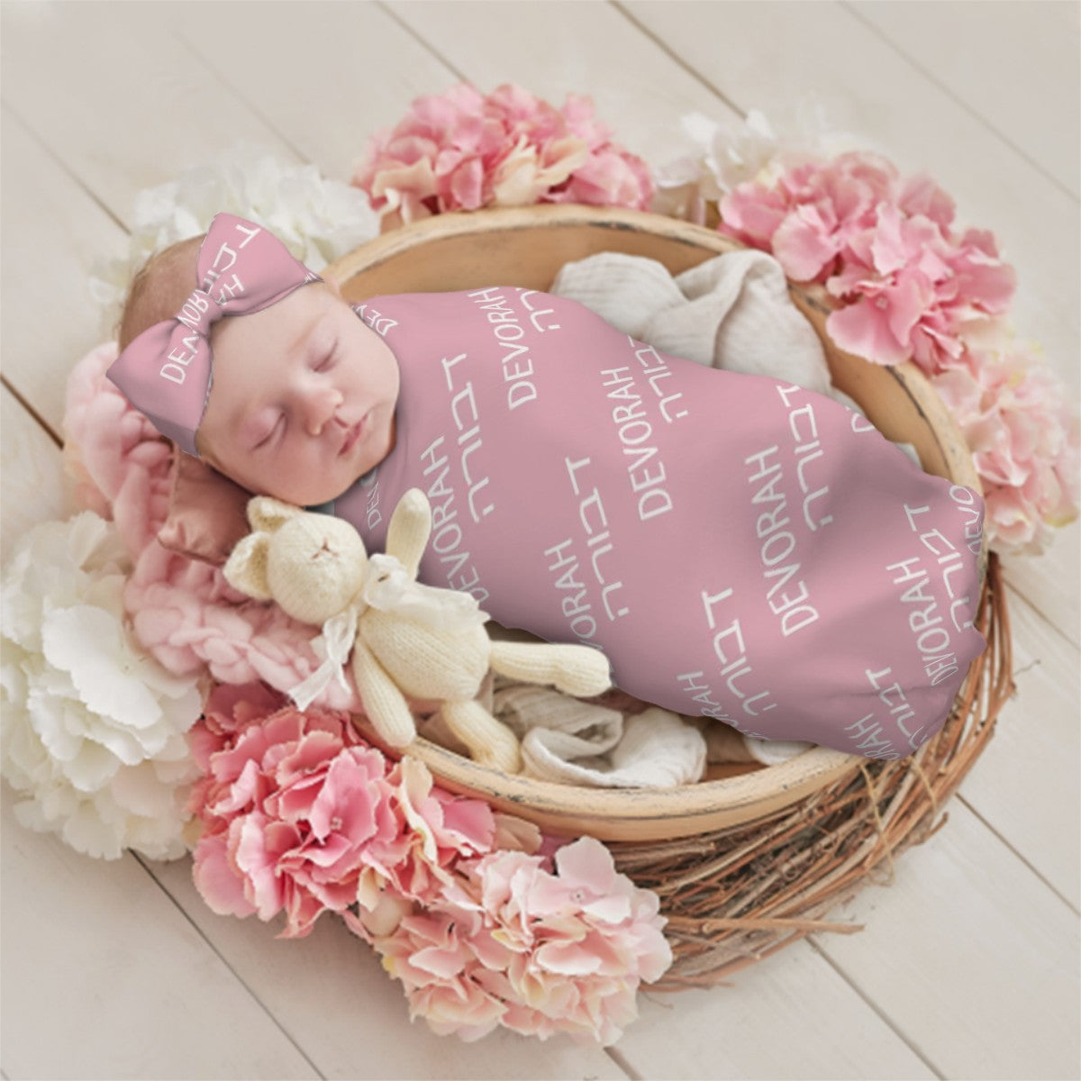 Wrap your baby in love! Personalized Hebrew & English name swaddle blanket. Soft, custom comfort for any gender.