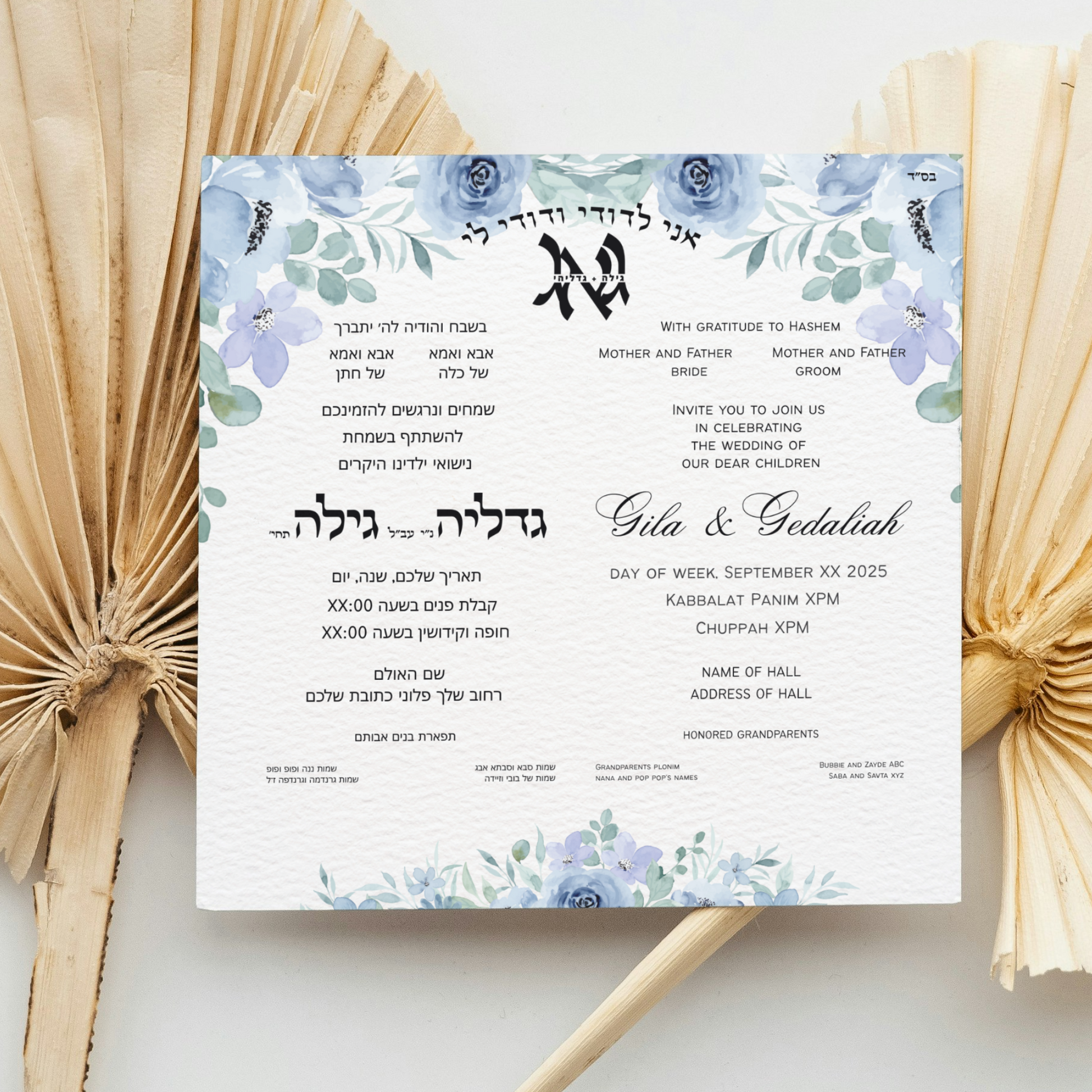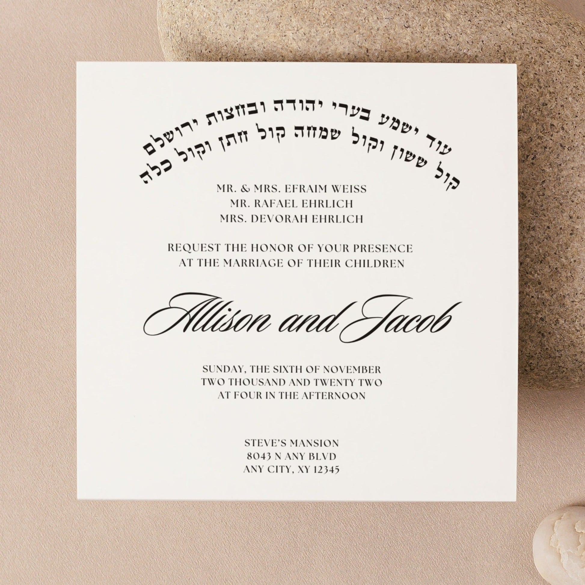Announce your love story. Create a custom digital wedding invitation and monogram in Hebrew and English for a modern, elegant celebration.