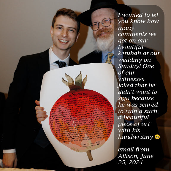 Your ketubah is a deeply personal and unique work of art, meticulously crafted just for you. My aim is always for your complete satisfaction with your custom piece.
