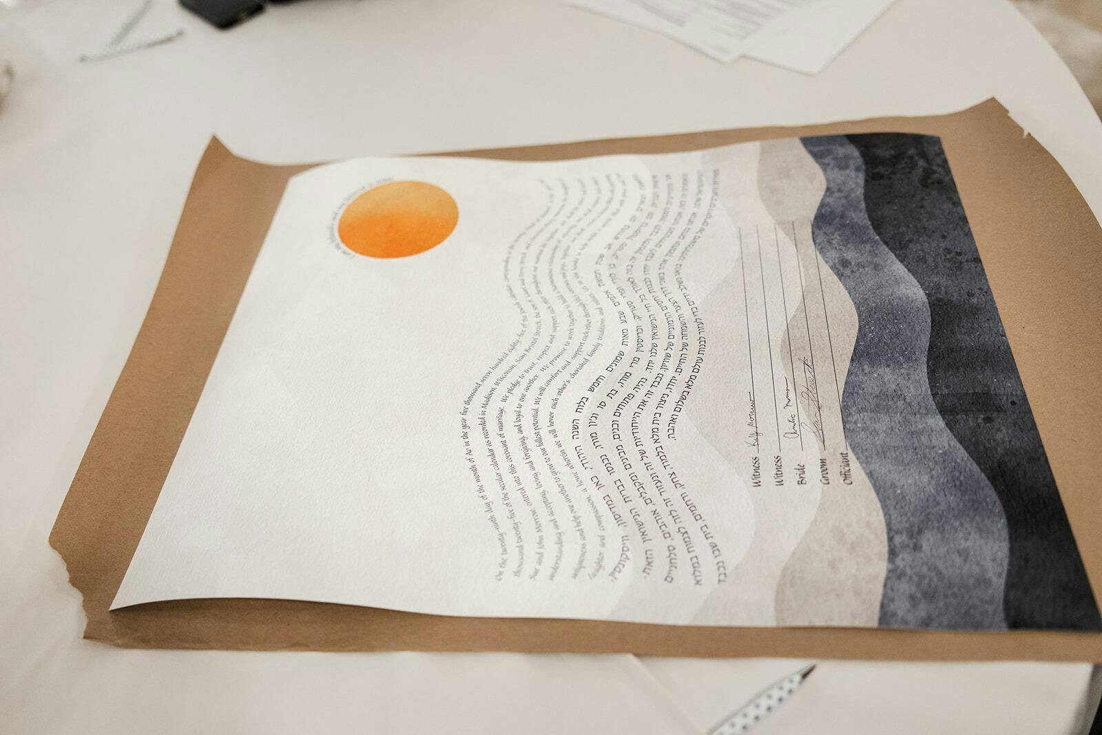 Keep an eye on your email or phone; I’ll reach out with any questions and send a draft for your review, usually within 24 hours. If you have a rabbi or cantor officiating, they’ll need to approve the final version. Once everyone’s happy, your ketubah is printed and shipped. Simple as that.