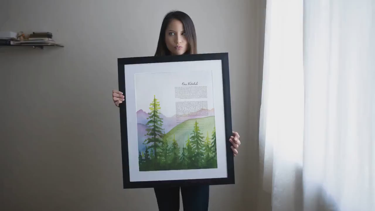 Remember to factor in the size of the mat and the size of the frame if you are ordering your ketubah or print framed. This will ensure it will fit exactly how you imagined on your wall.