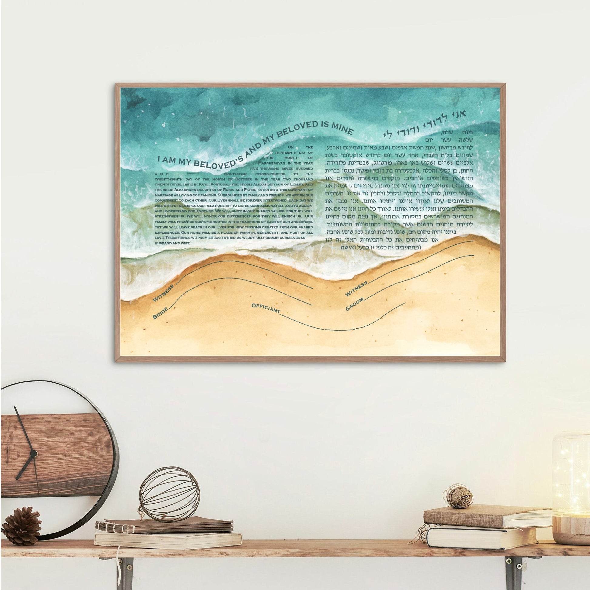 Remember to factor in the size of the mat and the size of the frame if you are ordering your ketubah or print framed. This will ensure it will fit exactly how you imagined on your wall.