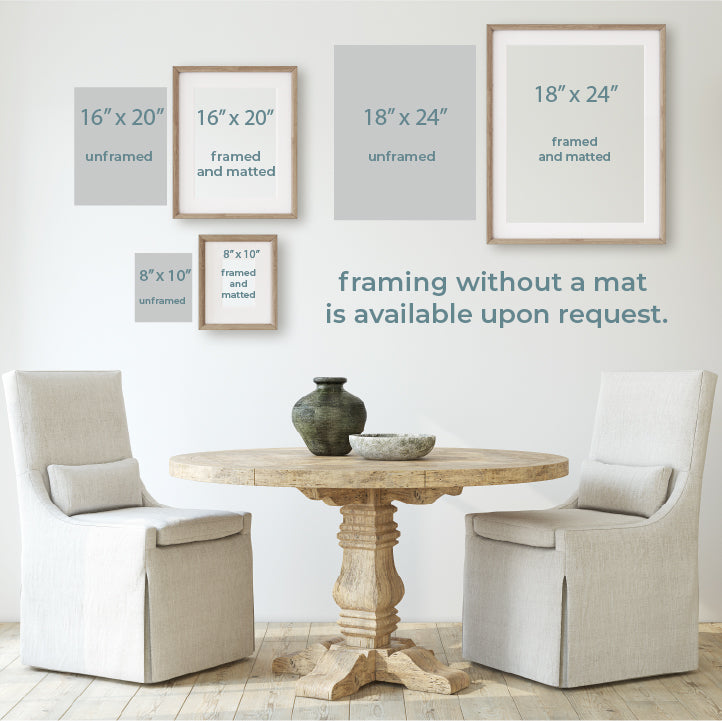 Additional frame colors and sizes are available for pricing on request.Everything you need to know about framing is found here.